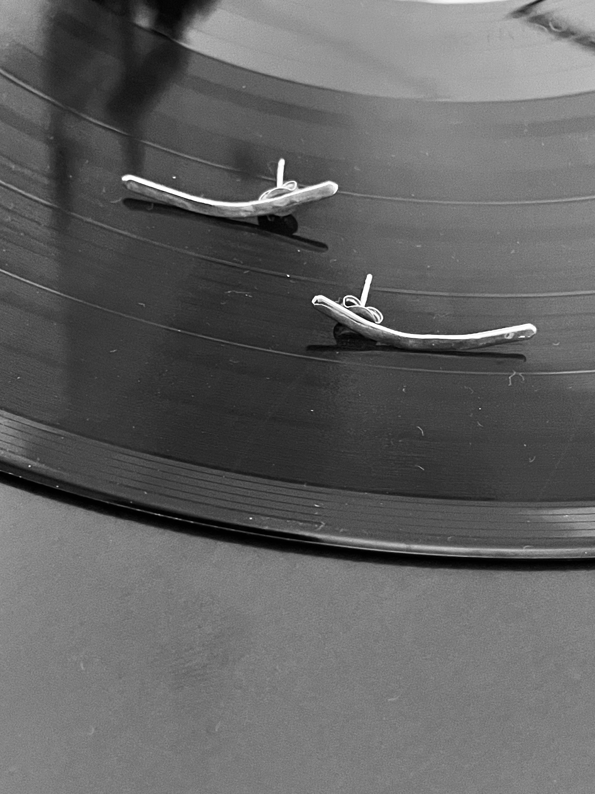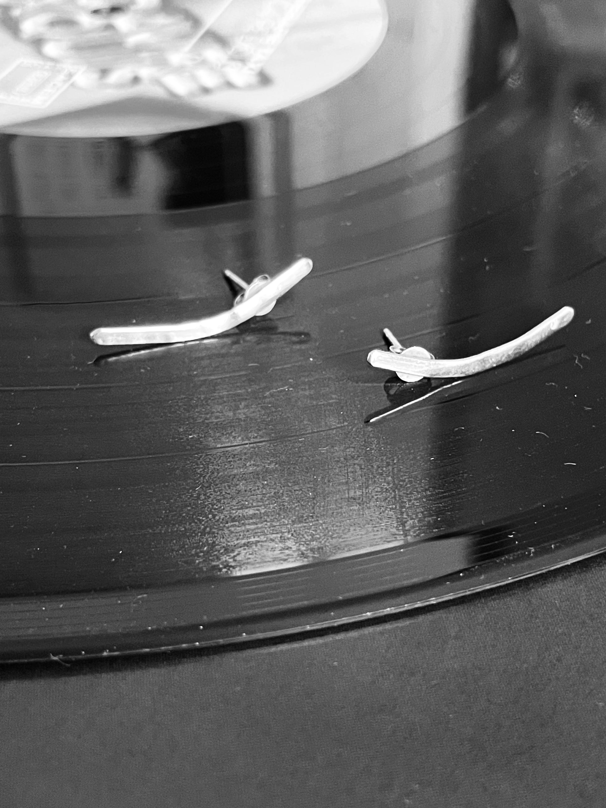 Boucles d'oreilles entièrement réalisées à la main longeant le lobe de l'oreille, ajustable à la ligne du lobe de chacun.